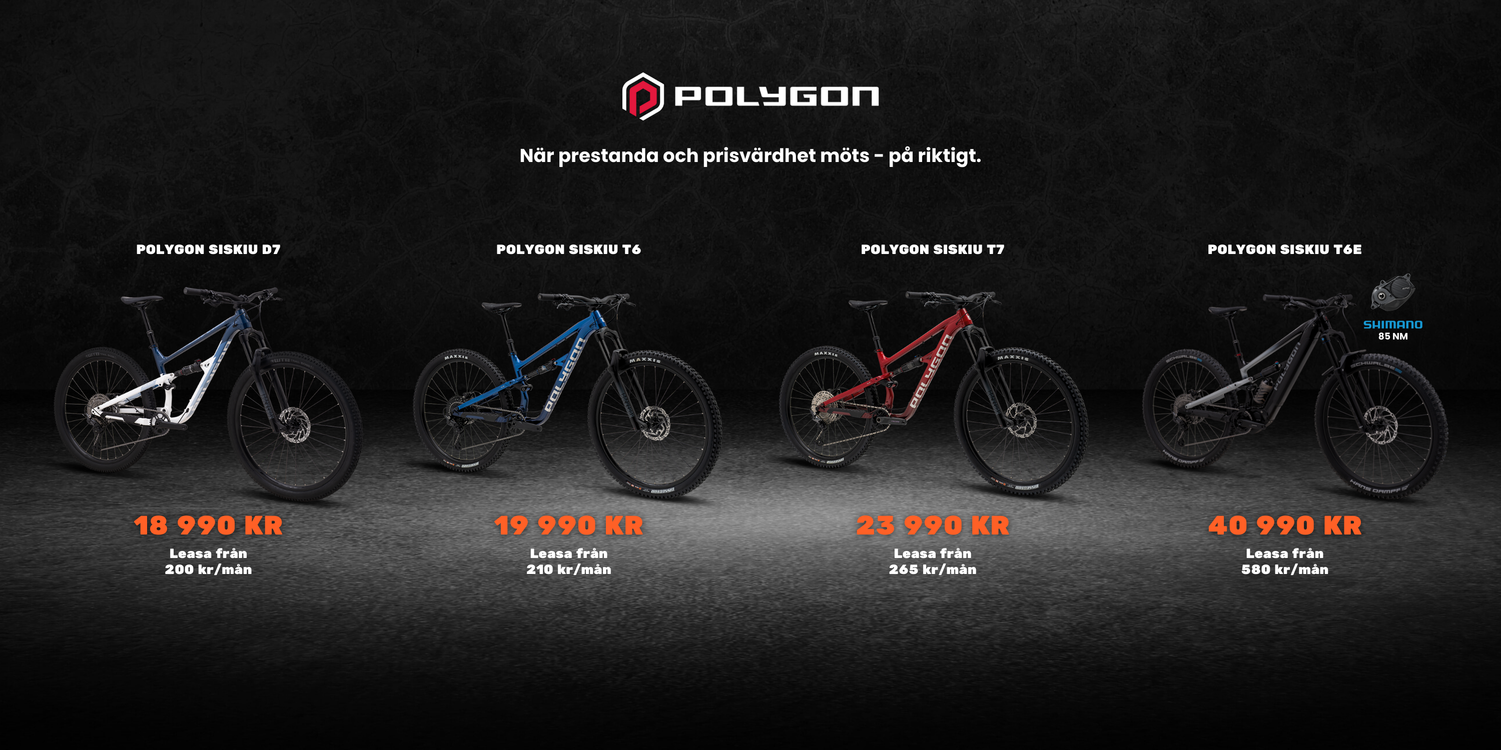 Vi har cyklar från Orbea, Polygon och Teewing samt tillbehör från många olika spännande varumärken, som Fox, Adidas Fiveten, Tripoint, Evoc, Muc-Off m.fl.