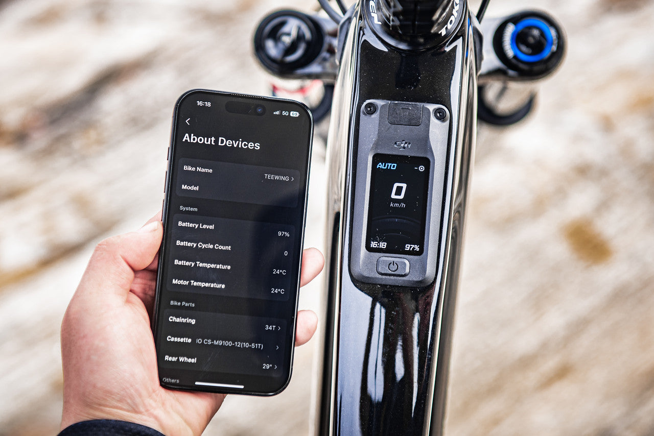Med Shimano XT M8100 12-delad drivlina erbjuds exakt, pålitlig växling och beprövad bromsprestanda. Det högkapacitativa 800 Wh-batteriet från DJI, med en vikt på cirka 3,74 kg, ger en räckvidd på upp till 157 km, vilket gör Turbo Force XT perfekt för långa turer och heldagsäventyr. Trots den stora batterikapaciteten håller cykeln en totalvikt under 22,7 kg.